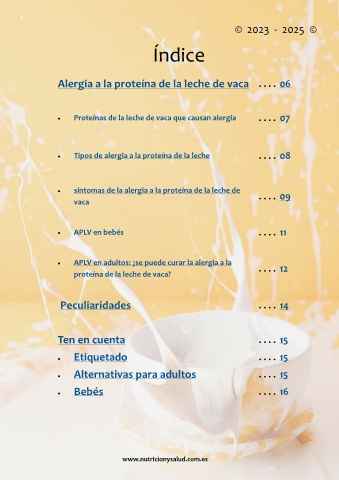 Tipos de alergia a la proteína de la leche . . . . 08