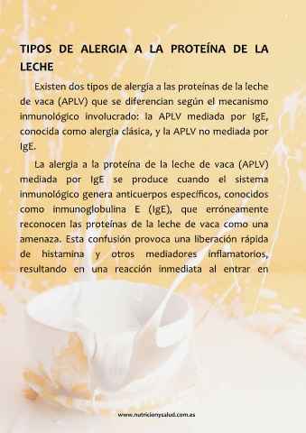 TIPOS DE ALERGIA A LA PROTEÍNA DE LA