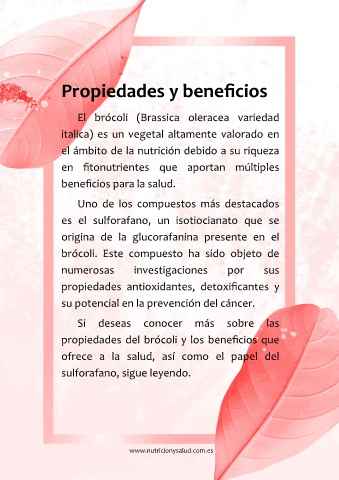 brócoli. Este compuesto ha sido objeto de